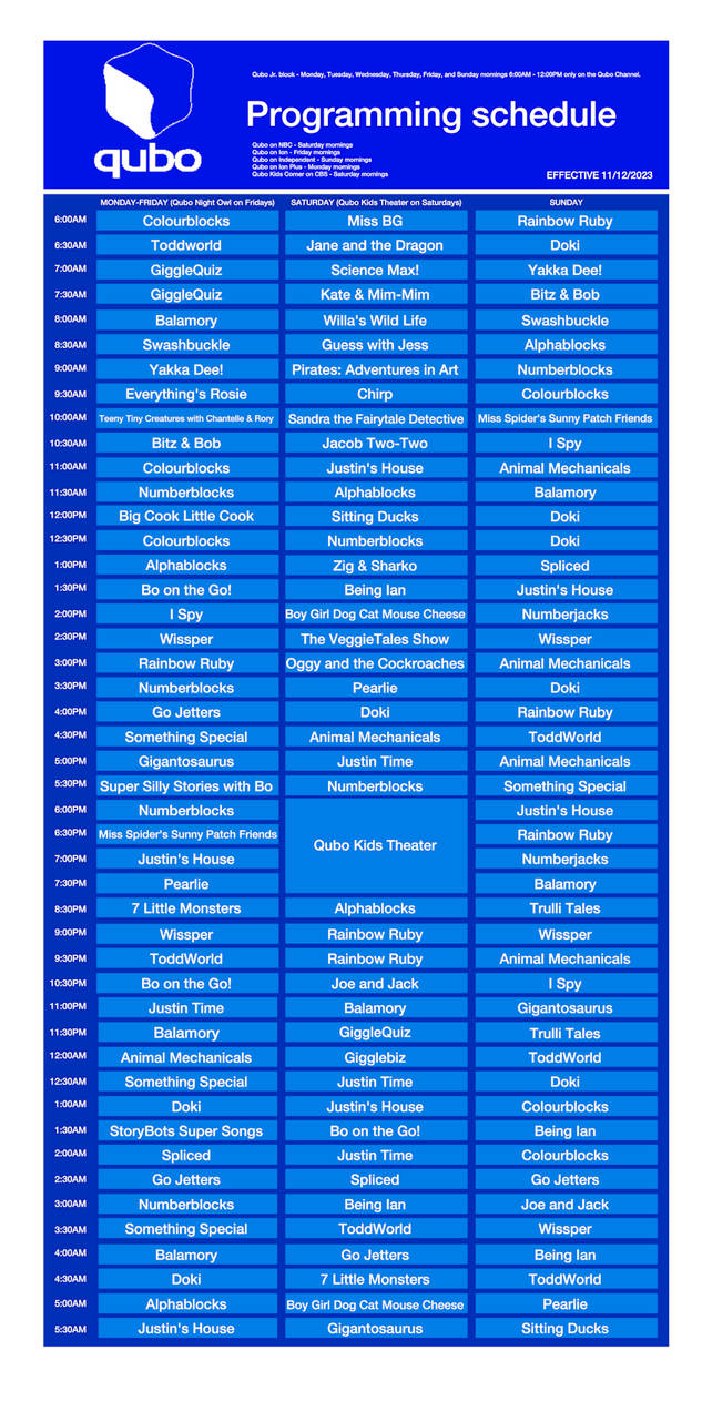 Source : qubo.fandom.comQubo television schedule 11 12 2025 by Adrick00 on DeviantArt